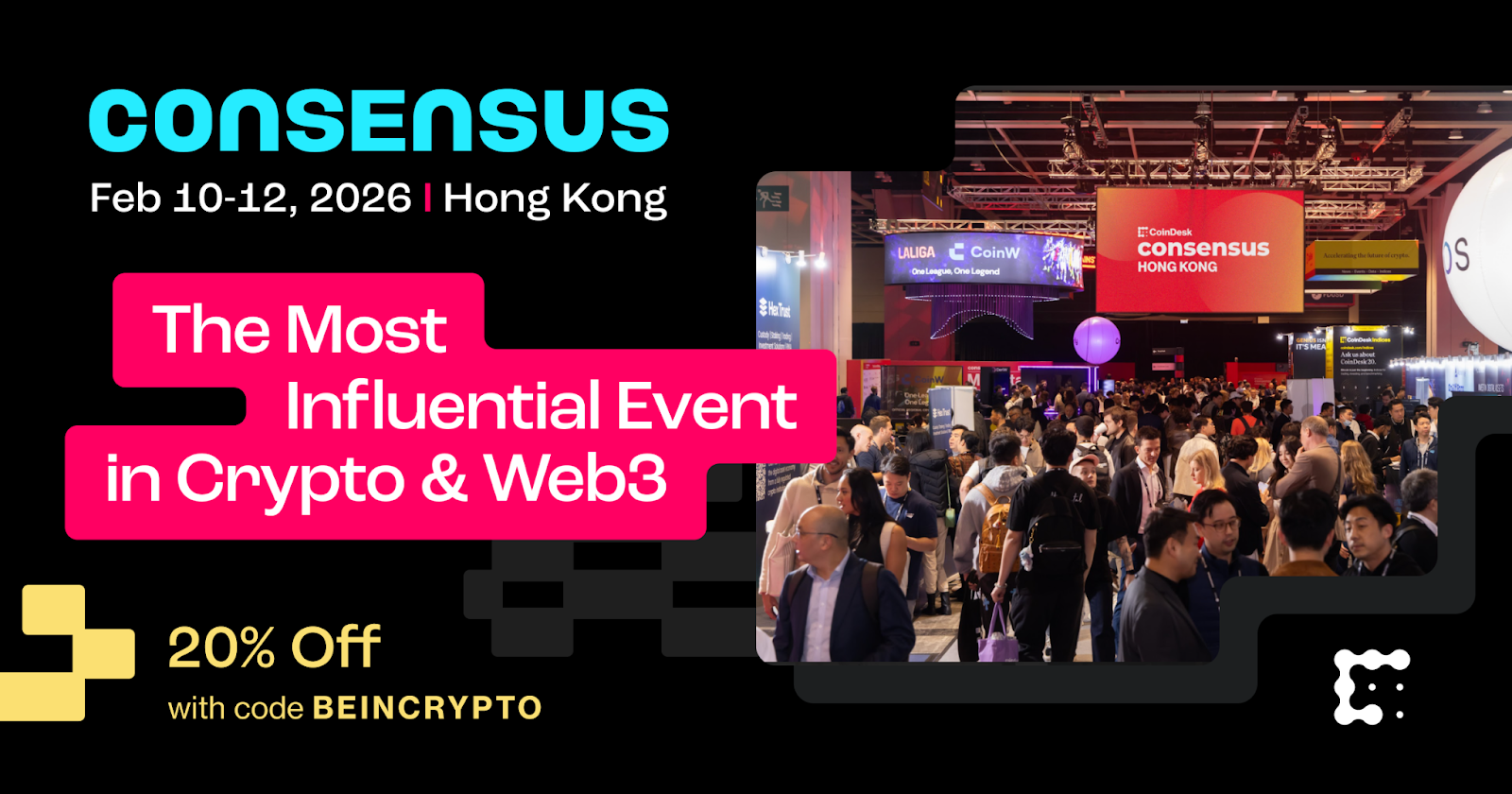 Following a sold-out debut in 2025, Consensus by CoinDesk has announced its return to Hong Kong from February 10–12, 2026. Building on an inaugural event that attracted nearly 10,000 attendees from over 100 countries and contributed an estimated HK$275 million to the local economy, the 2026 edition is projected to host 15,000 industry decision-makers.