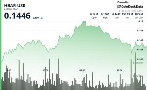 Hedera gains on elevated volume while establishing support above $0.1427 during measured advance that coincides with significant institutional developments.