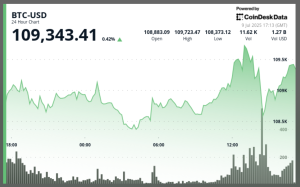 Bitcoin surged to $109,343 on July 9, up 0.8% over the prior 24 hours, according to CoinDesk Research’s technical analysis