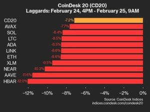 CoinDesk Indices presents its daily market update, highlighting the performance of leaders and laggards in the CoinDesk 20 Index. The