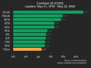 CoinDesk Indices presents its daily market update, highlighting the performance of leaders and laggards in the CoinDesk 20 Index. The