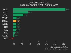 CoinDesk Indices presents its daily market update, highlighting the performance of leaders and laggards in the CoinDesk 20 Index. The