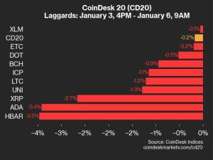 CoinDesk Indices presents its daily market update, highlighting the performance of leaders and laggards in the CoinDesk 20 Index. The