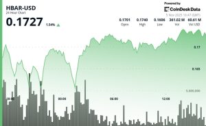 Hedera’s HBAR token climbed 1.31% to $0.1725 on Tuesday, with trading volume soaring as technical indicators point to a potential