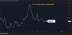Bitcoin’s volatility indices are declining, just like the S&P 500’s.